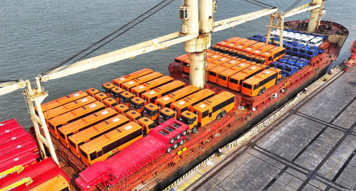 ▲(资料图)2月16日,江苏苏州张家港港新重装码头,出口至共建“一带一路”国家的国产车辆。图据视觉中国